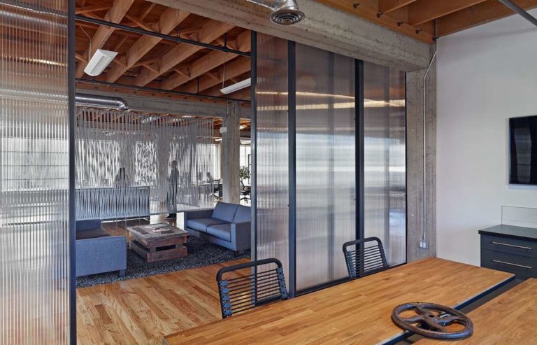 Поликарбонат используют для создания перегородок между кабинетами или создания разных функциональных зон в рамках одного офисного помещения, что позволяет сотрудникам не отвлекаться на внешние процессы (такие как, скажем, приготовление кофе в отдельной зоне), а всё своё внимание уделять непосредственно работе.