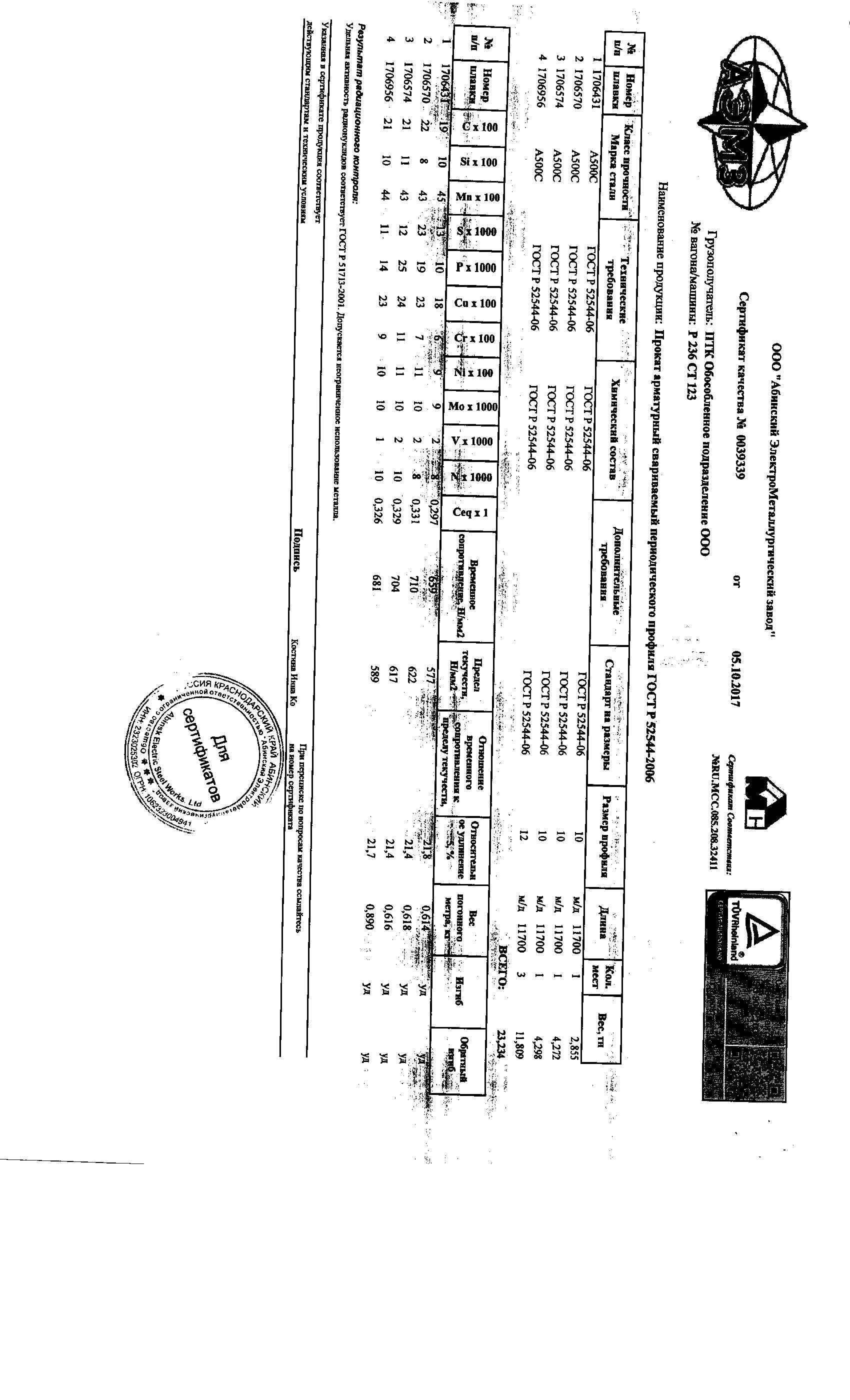 Вес м/п 0.617 Длина по ГОСТ 11.7 Размер 10 -