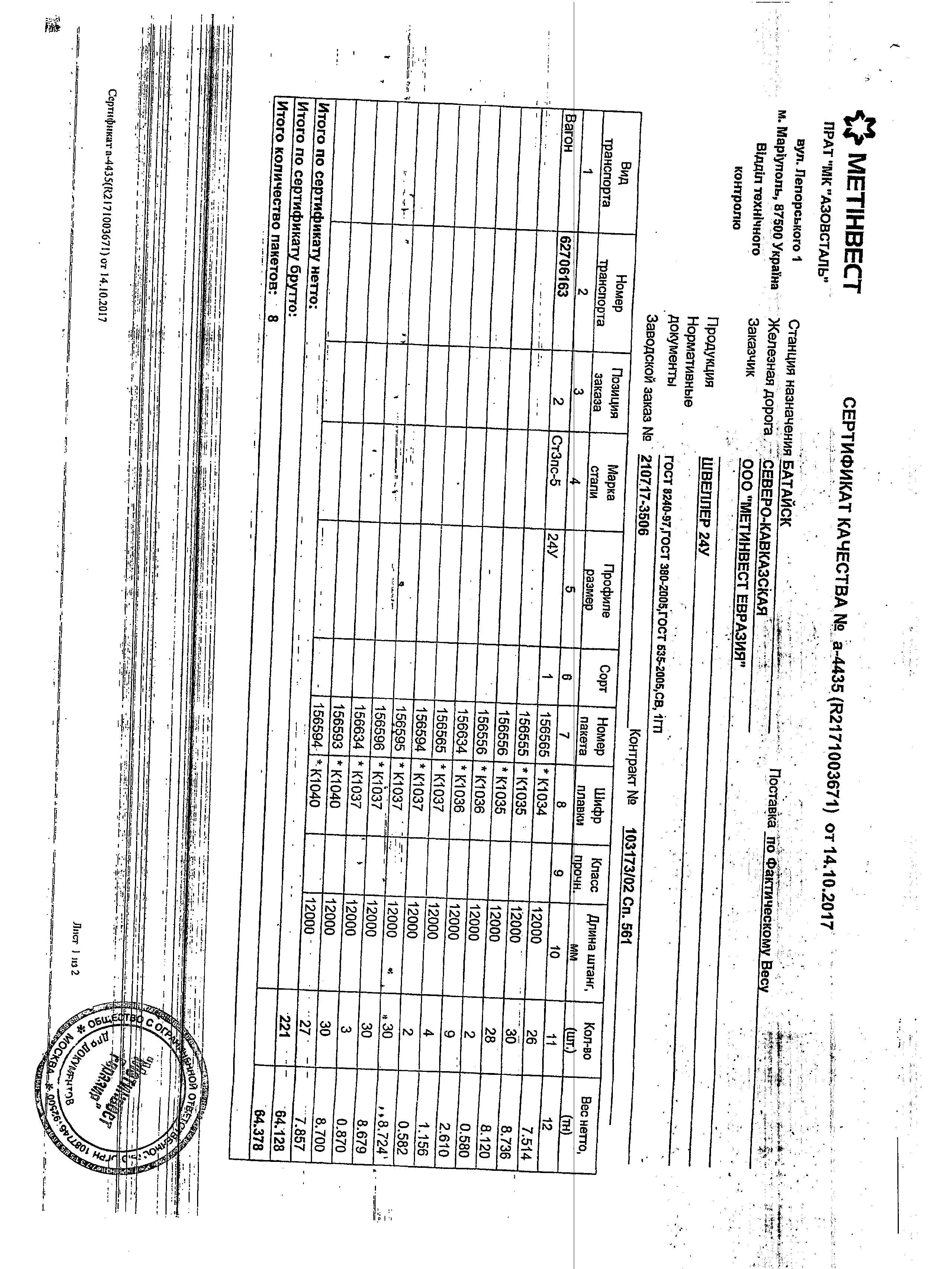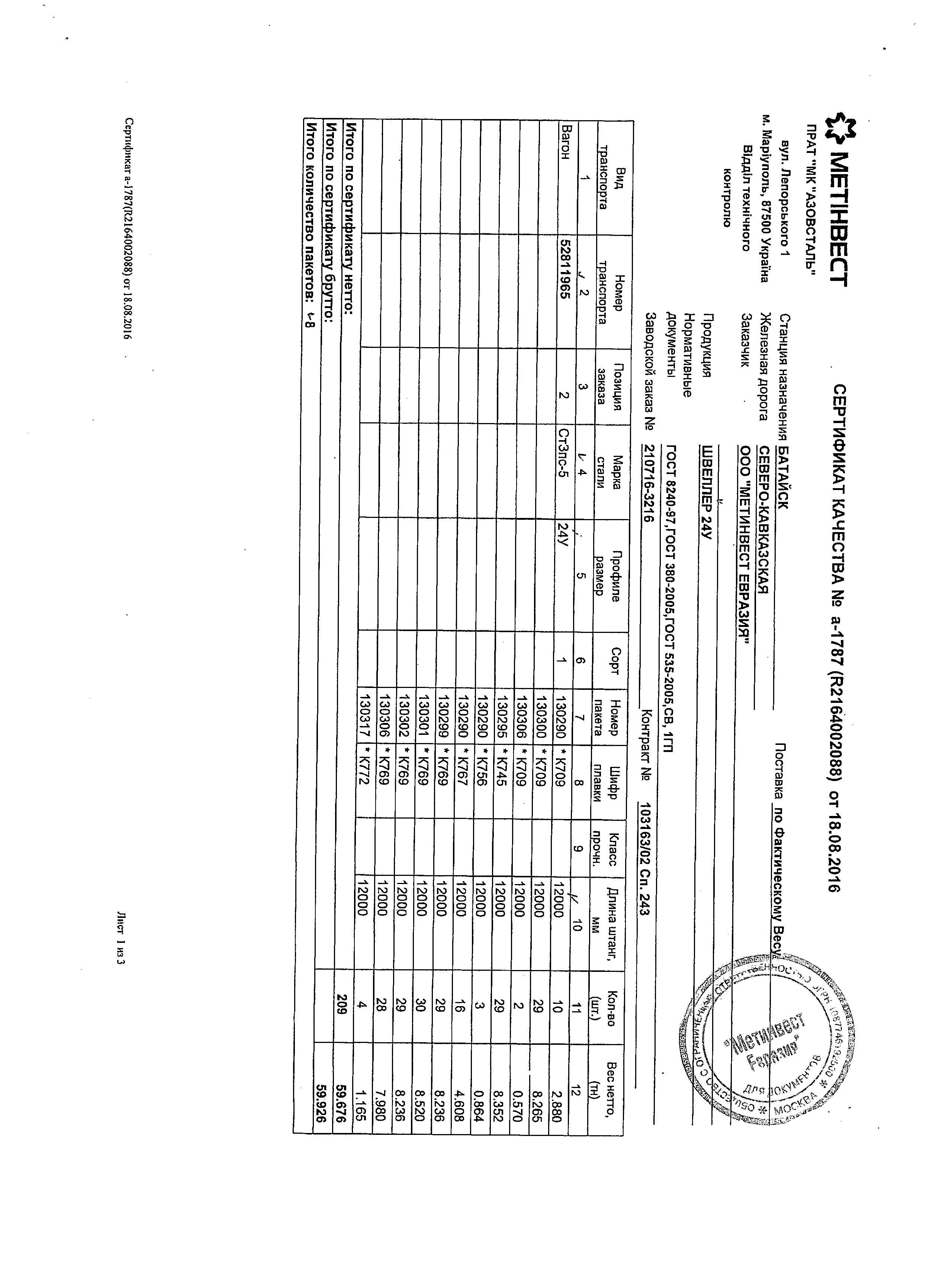Вес м/п 24 Длина по ГОСТ 12 Размер 24 -