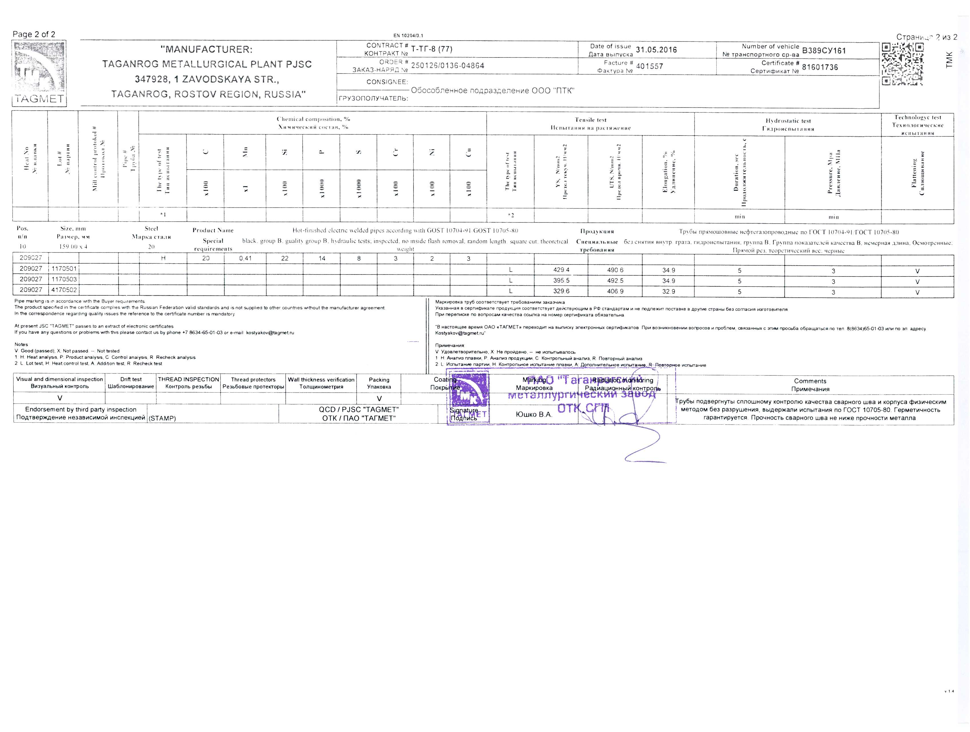 Вес м/п 15.29 Длина по ГОСТ 11.7 Размер 159 Толщина стенки 4 -
