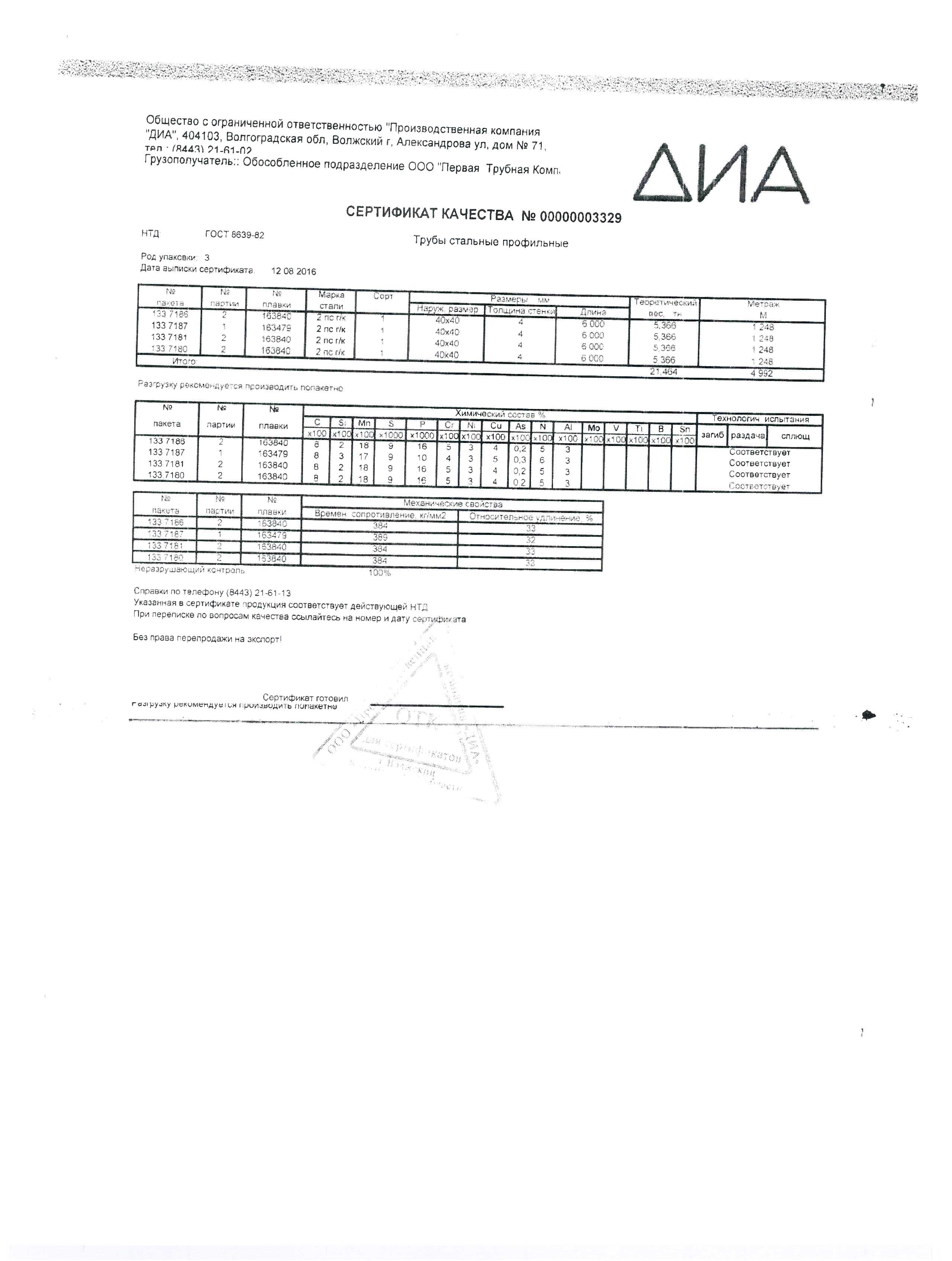 Вес м/п 4.3 Длина по ГОСТ 6 Размер 40х40 Толщина стенки 4 -